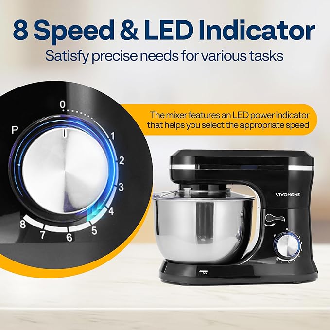 - STURDY & SAFE MATERIAL: Crafted from food-grade stainless steel and ABS housing, this electric stand mixer is not only durable but also resistant to corrosion, ensuring long-lasting use and food safety; Its sleek, compact design adds both style and functionality to your kitchen without taking up much space; Makes a great housewarming gift or present for weddings, Christmas, or birthdays